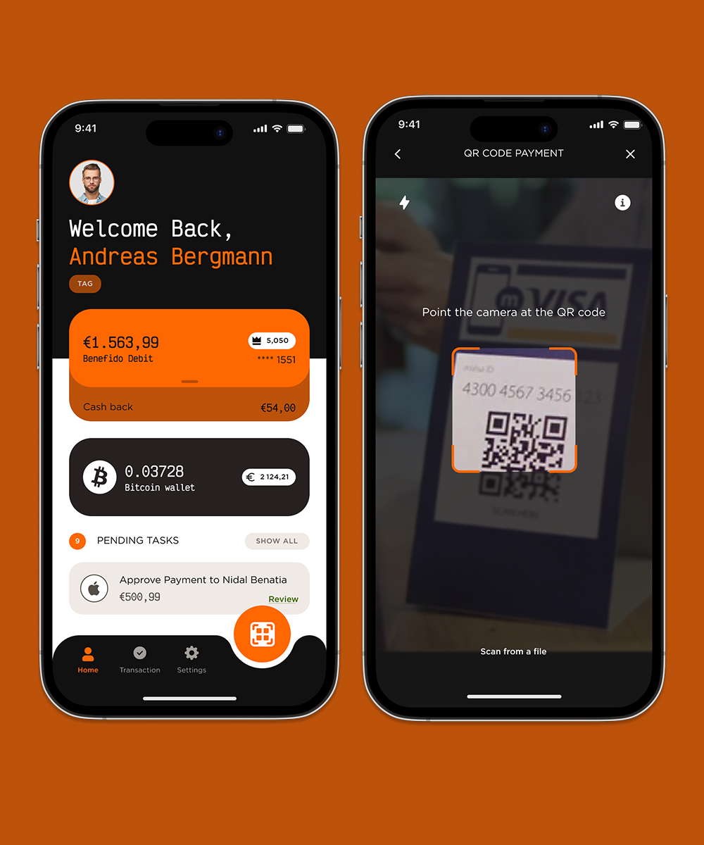 Complex banking mobile application and custom backend with peer-to-peer payments biometric authentication. Fullt integrated with belgium Core-banking provider Paynovate.