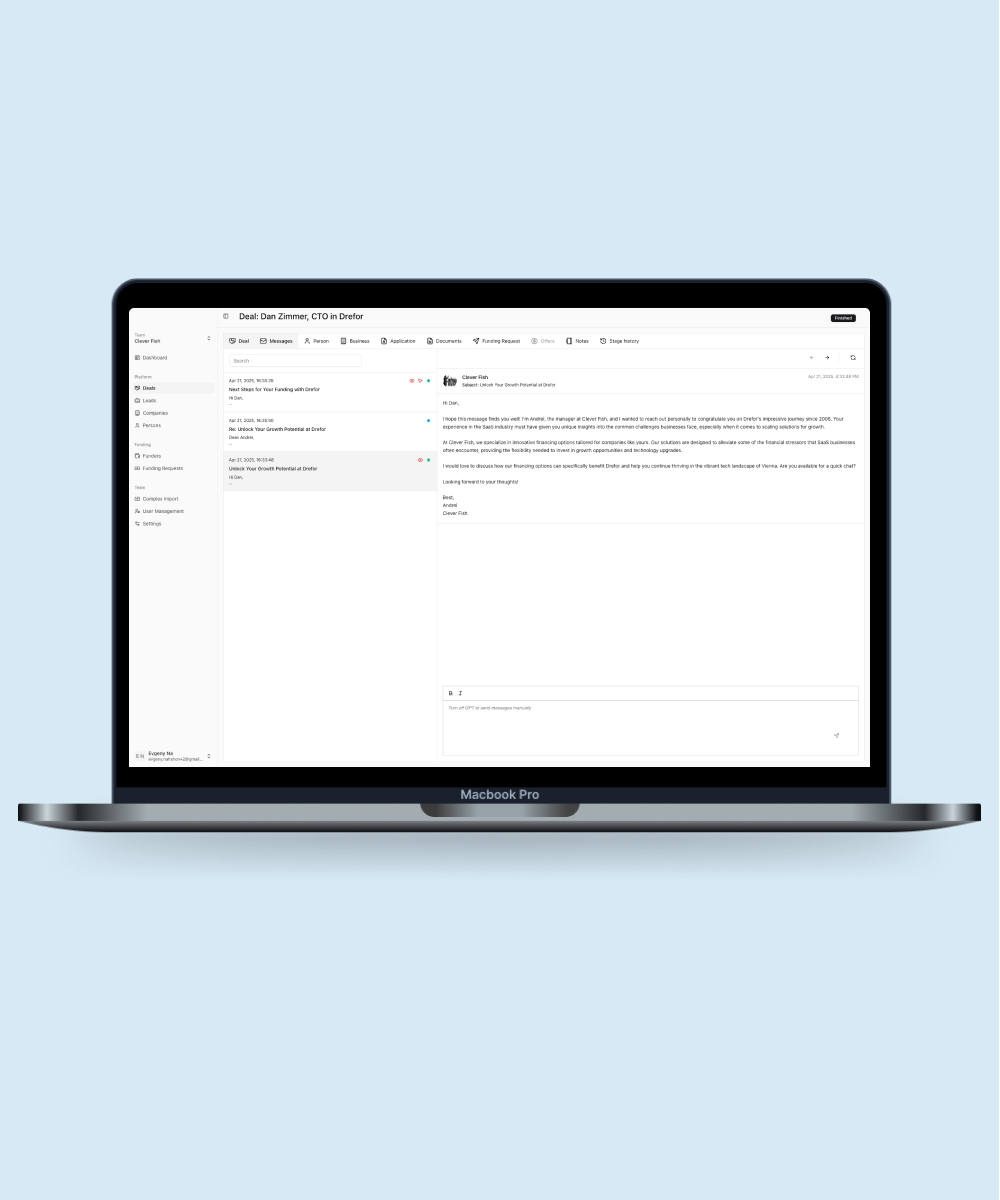 Fully AI driven CRM system for sales automation, uses lead data to generate and send personalized emails to potential clients, read and respond to incoming emails, schedule follow-up calls and meetings, and track the progress of each lead.